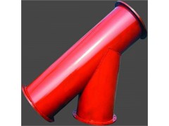Y-FBQ型分歧式防爆器是安装在瓦斯抽放管路中的简易防爆装置。其结构由主干连接管和分歧管组成,分歧管端部用防爆橡胶板封堵。正常工作状态下,瓦斯按照Y-FBQ型防爆器上的箭头标识方向抽送;瓦斯爆炸,管路发生异常时,在压力的作用下,分歧管路上的防爆橡胶板破开,释放瓦斯抽放管路中的压力,以便保护其它瓦斯抽放管路。